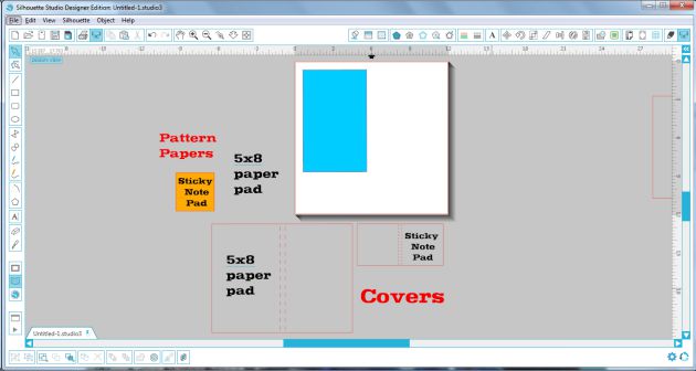 The file ended up being 8 1/2 x 11 – but i used a 12 x 12 piece of paper just to make sure it cut all around. I resized the pattern paper for the front of the notebook to be 5 x 8.