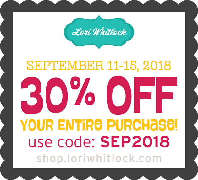 I wanted to remind you all that there are just hours left for the September Sale! All files in the Lori Whitlock SVG Shop are 30% off, just use code SEP2018 at checkout! It’s the perfect time to get all of those items on your wish list! Sale ends at midnight. shop.loriwhitlock.com
