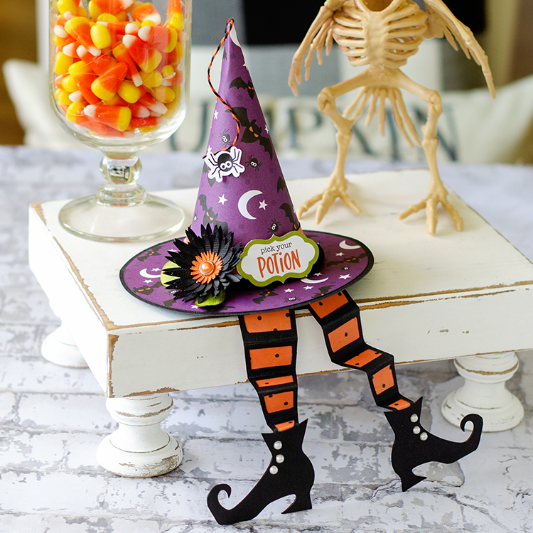 Hello everyone, I have another Halloween décor project to share today! I used the new 3D Witch Hat 3 (Silhouette, SVG) and the Witch Boots (Silhouette, SVG) to create this decorative piece.
