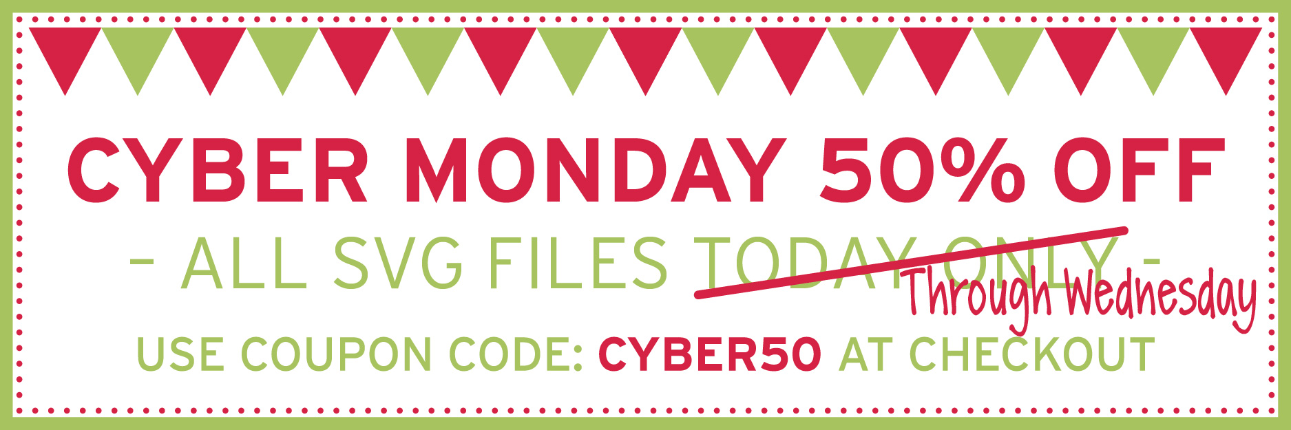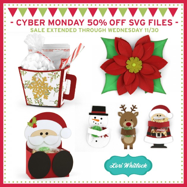 I’m happy to announce that the Cyber Monday 50% off sale has been extended through Wednesday! The entire Lori Whitlock SVG Shop is 50%! Time to stock up! Use coupon code: CYBER50 at checkout to get the discount!
