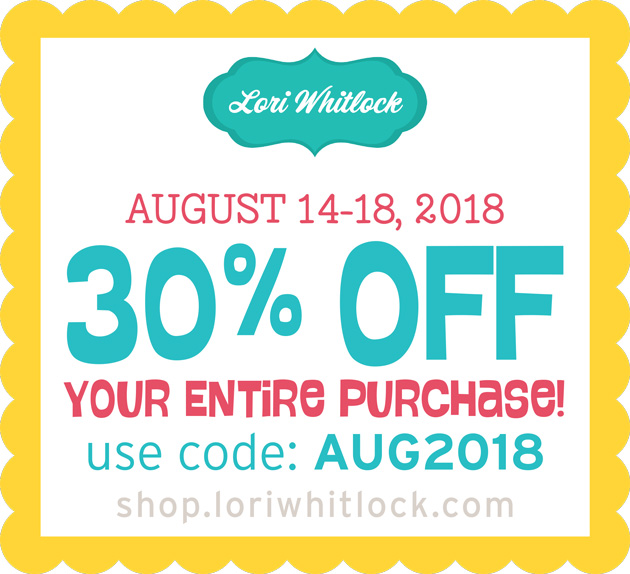 This week we have a 30% OFF SALE going on at Lori’s SVG SHOP. ALL files (and commercial licenses) from Lori Whitlock, Kolette Hall, Doodlebug Design, Dresden Carri, Paige Evans, Rivka’s Renditions and SAS Creative are on SALE now through Saturday, August 18th! Be sure to use coupon code: AUG2018 (case sensitive) at checkout in the SVG SHOP. (Only one coupon code per order allowed)