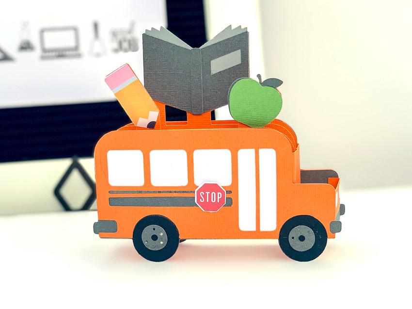 Most students have headed back to school or are heading back to school soon. I made this school bus box card with our school’s colors.