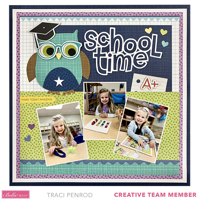 Hi Everyone! Today I’m showcasing a fabulous project using Bella Blvd.’s cut files! This awesome back to school layout was created by Traci Penrod for Bella Blvd.