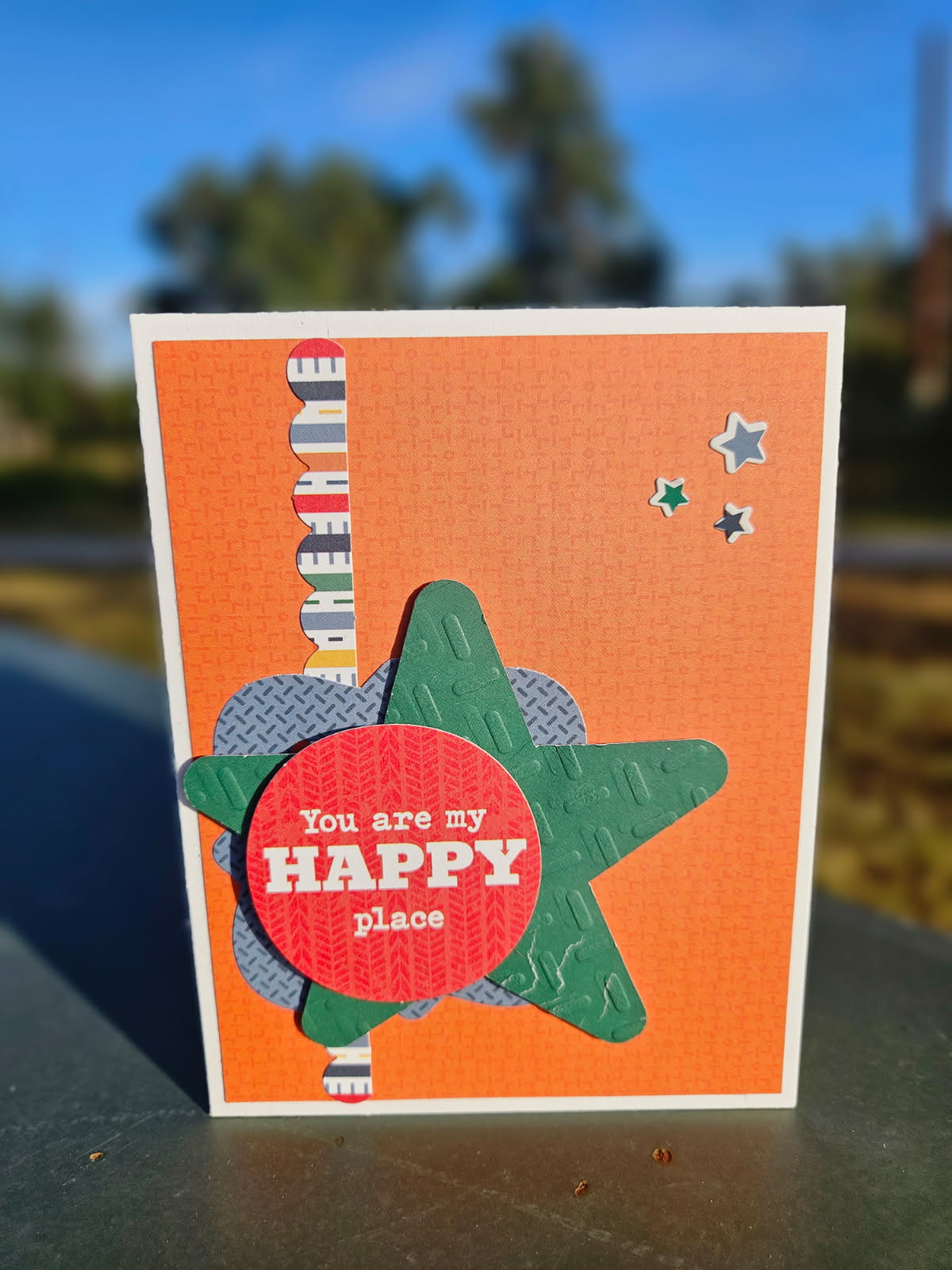I used one of Lori’s nested star (Silhouette)cuts on my card as the embossed element.