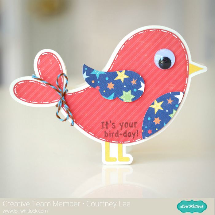 I stamped my sentiment second. You don’t have to. The cut file comes with the Happy Birthday sentiment that can be cut out letter by letter. 🙂 Lori has you covered! I popped the sentiment piece up on the pennant base and then popped that whole thing up.
