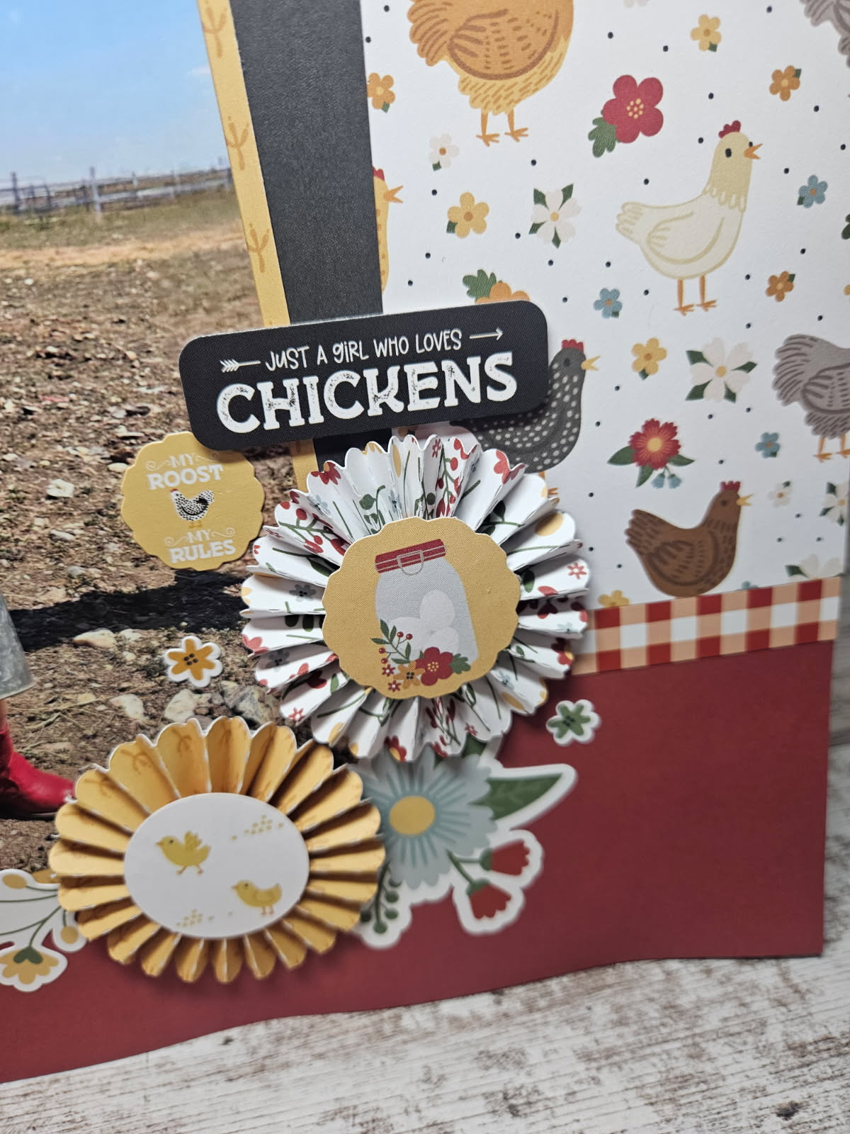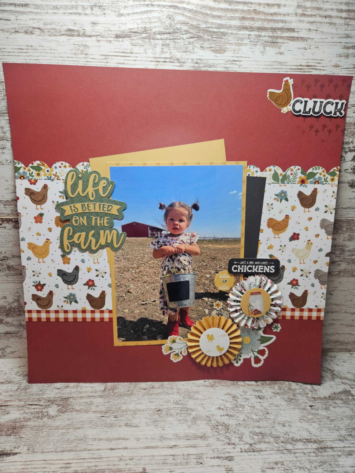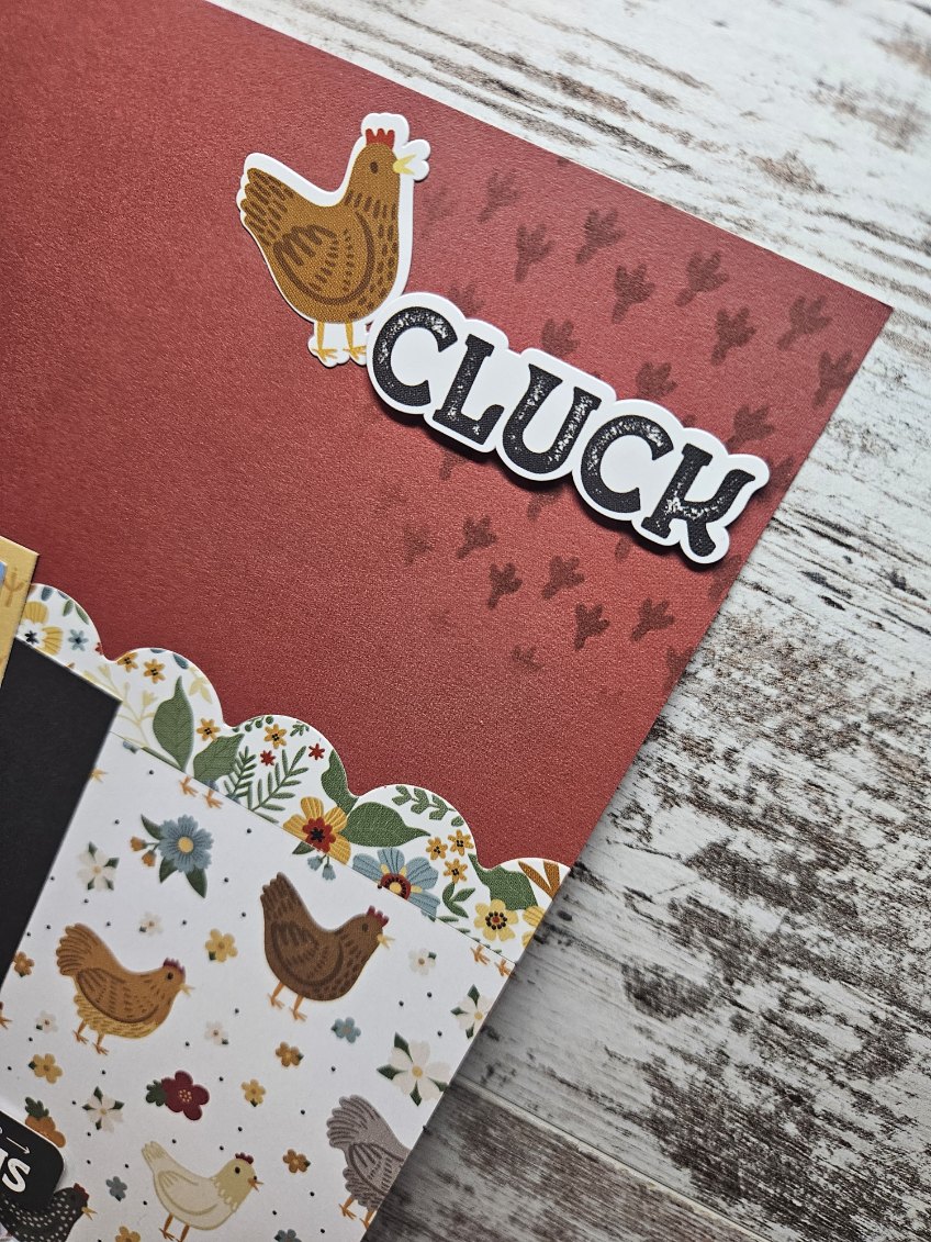 I used the Chickens paper and for my title I used the Life is Better on the Farm 2 image for my title and added a shadow backing.