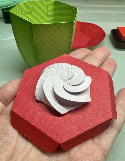 Today I am making Lori’s Tuck Lid Gift Box.  You can find the bundle (or singles) at Lori’s store HERE. It also includes a cute reindeer, a snowman, a penguin and a fun little gnome.