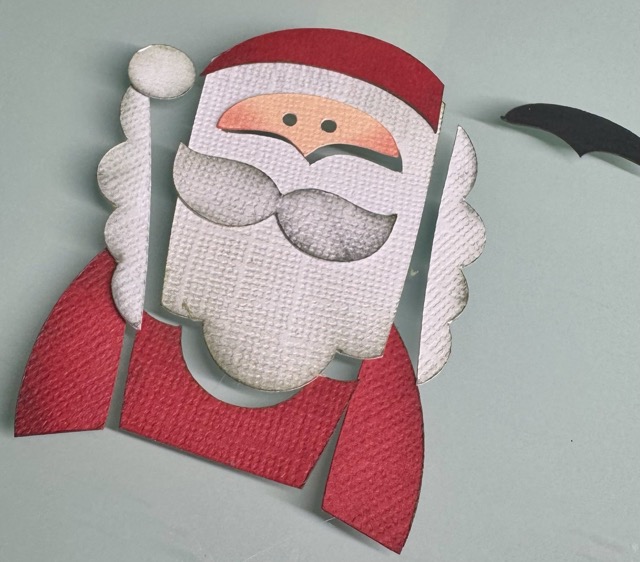 1. Glue the face layer with the black piece behind it in the hole in Santa’s beard.
