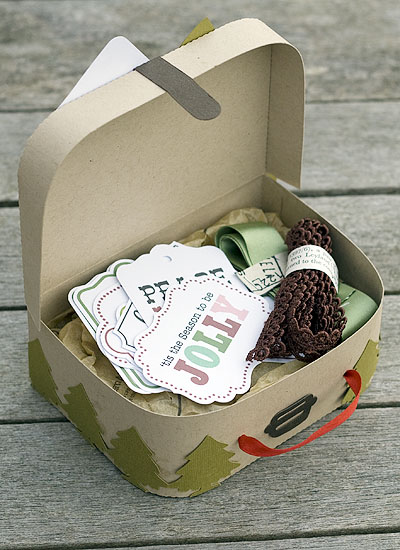 1. Both such cute ideas! Love Amanda’s little tree border added to the suitcase and the idea of filling it with print and cuts as a gift for a crafty friend. 🙂 And Corri’s Santa pillow box and Snowman treat topper are adorable–They make such an adorable pair! 🙂