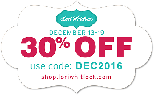 One thing customers seem to LOVE about blog hop week is our 30% OFF SALE going on at Lori’s SVG SHOP. ALL files (and commercial licenses) from Lori Whitlock, Kolette Hall, Doodlebug Design and Dresden Carrie are on SALE. Use code DEC2016 (case sensitive) at checkout in the SVG SHOP. (only one discount code per order allowed)