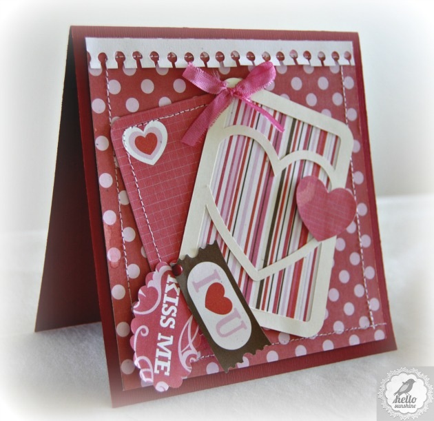 With Valentines Day being the next big event on the crafter’s calendar, I couldn’t think of a better way to get the creative juices flowing for 2013 than by creating a Valentines card. Lori’s latest digital paper collection – Kiss Me – is the perfect collection for all things LOVE and this card was created using the paper and elements from this collection. Please stop by my blog to get all the details on how I made this card.