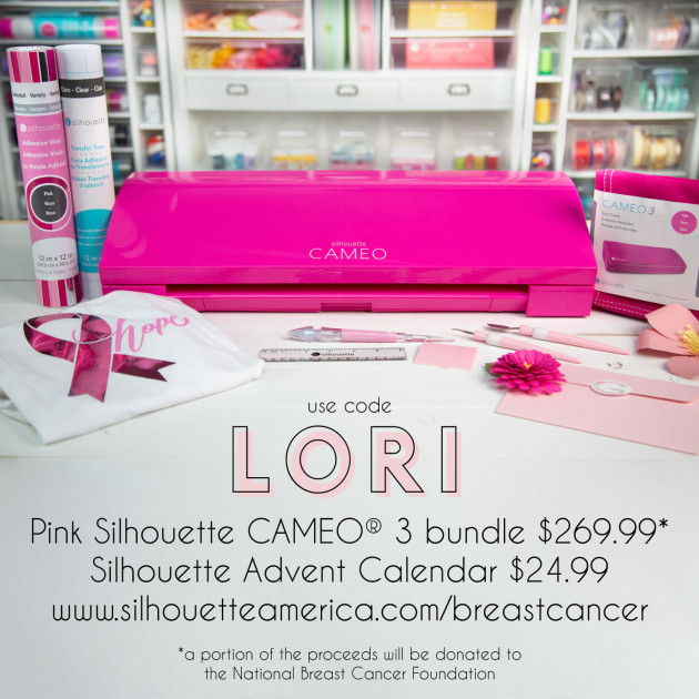I’m so excited to bring you a couple of exclusive deals from Silhouette for the month of October. October is Breast Cancer Awareness Month, and Silhouette has partnered with the National Breast Cancer Foundation to create pink Silhouette materials and tools. With every purchase of one of these pink products, Silhouette will donate a portion to the National Breast Cancer Foundation. These exclusive deals are available only through this exclusive link and when you use the code LORI. Because this is such a special cause, the sale will run through October 31st!