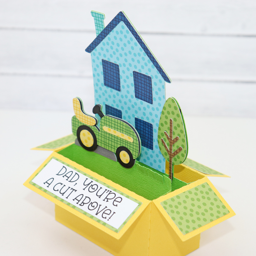 Hello crafty friends! Aimee here with you today with another fabulous Father’s Day card! As soon as I saw the Box Card Father’s Day Mower (Lori’s SVG Shop, Silhouette) with the John Deere tractor I knew I needed to make it for my husband. He’s not a country guy but he loves his tractor for doing yard work!