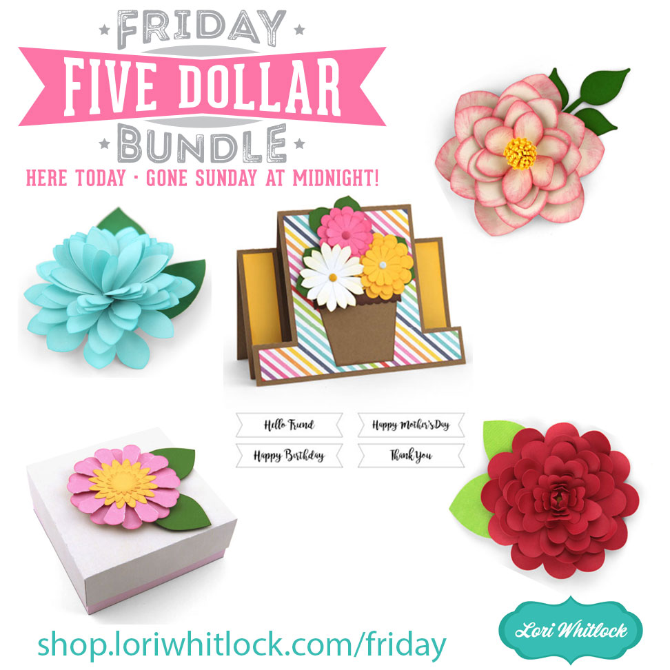 Now through Sunday, you can pick up THIS gorgeous Mother’s Day/Flower Bundle including 5 fun SVG files for just $5 which is $9.45 worth of SVG files, over 47% savings!! SHOP HERE