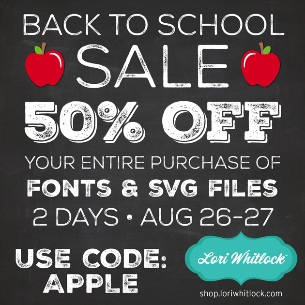 There’s 6 hours left to take advantage of the 50% OFF sale in the Lori Whitlock SVG Shop! All cut files and fonts are half off when you use code APPLE at checkout!