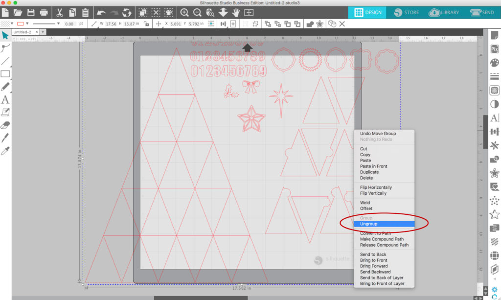 Next, I un-grouped and removed pieces all except the triangles.