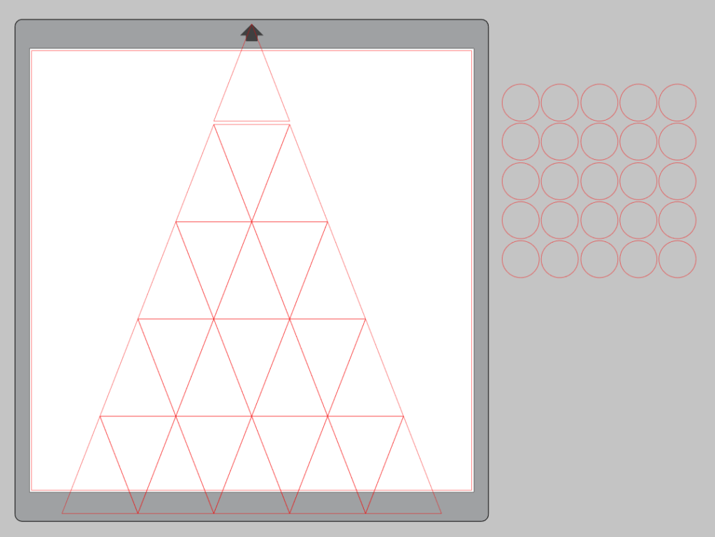 Repeat this process until you’ve filled all 25 triangles. When complete, you will want to group each number and triangle. Then, carefully set up your triangles to print and cut. Depending on your printer, this can be done on 8½”x11″ or 12″x12″ sheets.