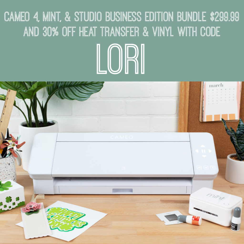 Not only do you get to choose between 3 luxurious colors but you get a FREE Mint machine too. In addition, with every purchase of the Cameo 4 & Mint Bundle, Silhouette will throw in the Business Edition of Silhouette Studio absolutely FREE! Each bundle is priced at $299.99 + free shipping when you use code LORI at checkout. That is you a total discount of 43% off all the items original prices.