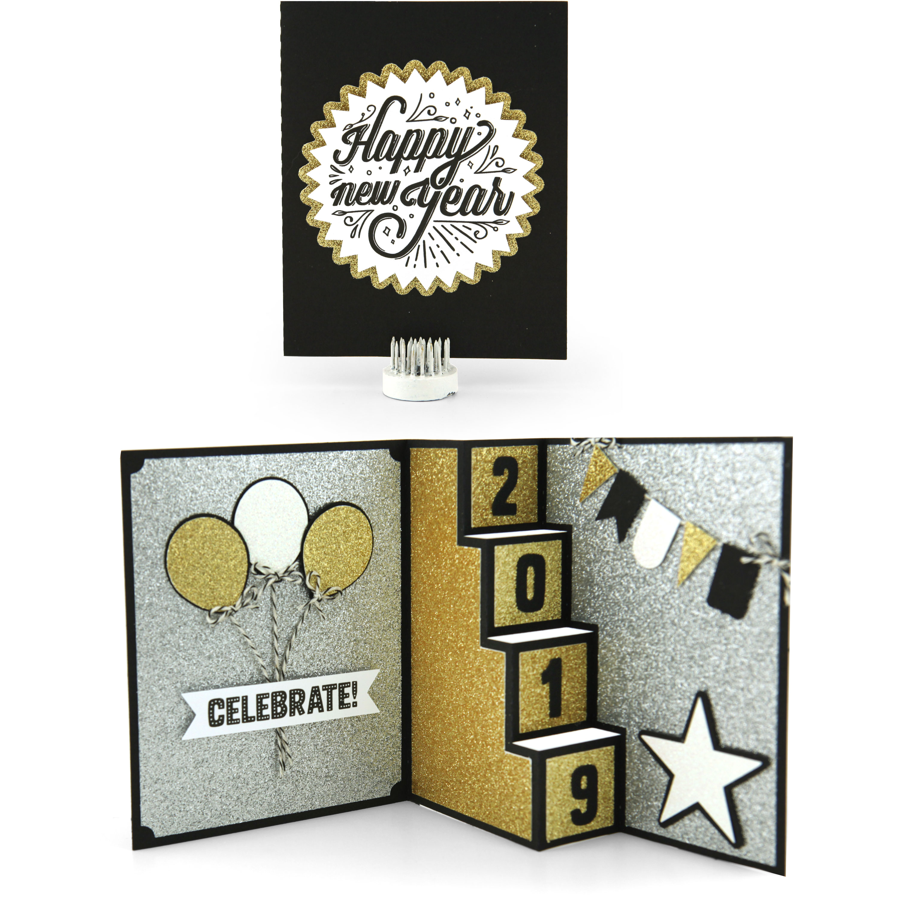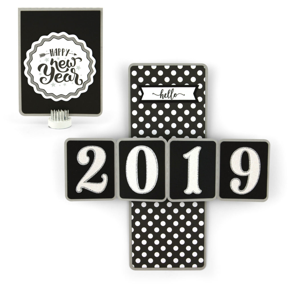 The 4 Step Card Happy New Year is such a fun card with a great print and cut sentiment, and I’ve added additional numbers with the file so you can use it year after year! I have a tutorial for assembling this type of card here.