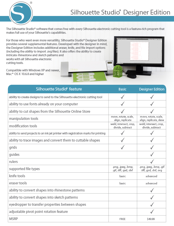 The Silhouette Studio® Designer Edition Software is an awesome upgrade and NOW is the time to buy it at a 40% DISCOUNT!! It only goes on SALE like this a couple times each year. One of the best things about the Designer Edition is the ability to open SVG images and cut them with your Silhouette machine! The Silhouette Studio® Designer Edition Software contains all the same functionality as Silhouette Studio® plus the following designer features: