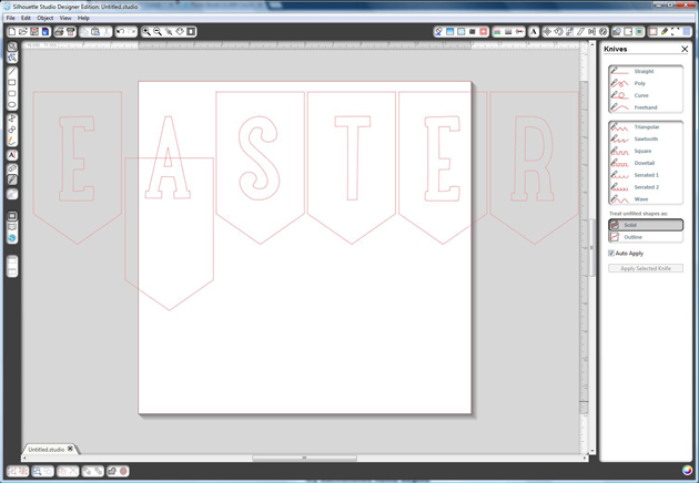 Select the bunting font and type your word out, enlarge to the size you would like your banner, I chose 5.5″h but I ended up selecting all at the end and making it smaller to fit the space where I’m going to display it.
