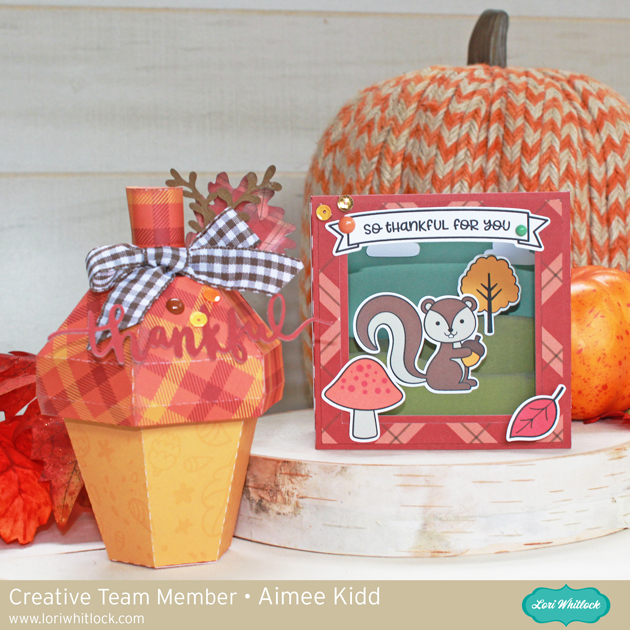 Today I am showcasing a couple of Lori’s older svg files and they turned out so fabulous made with Celebrate Autumn! This one here is called Shadow Box Card Scene Squirrel. These cards are so much fun to put together and came together quickly! Best thing is they fold flat for easy mailing. You can get this little beauty at the Lori Whitlock Shop or at the Silhouette Design Store.