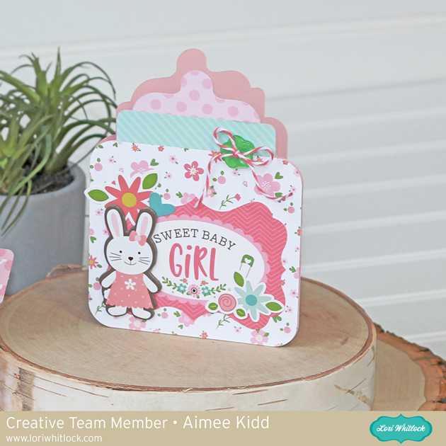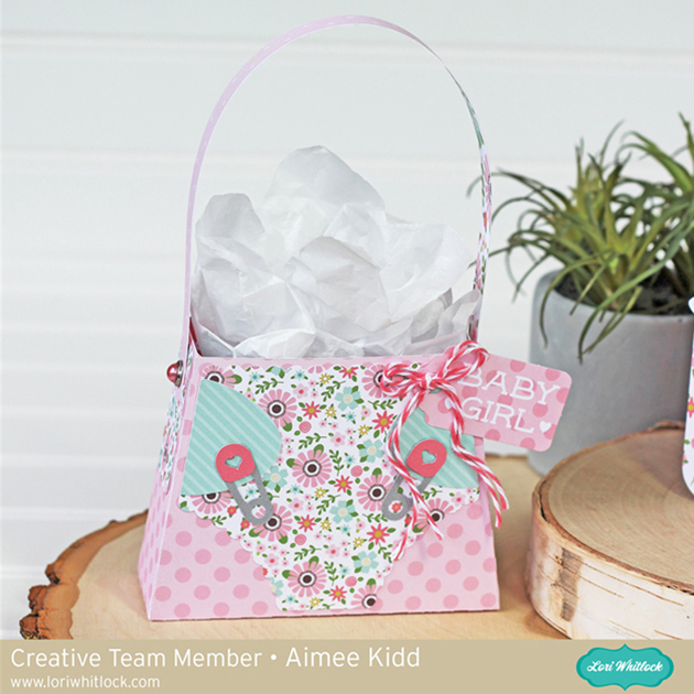 Today, I am sharing this card/gift bag for a sweet baby girl. I used the Diaper Bag (here in the Silhouette Store) and the Baby Bottle Shaped Card (here in the Silhouette Store) along with the beautiful new Lori Whitlock Sweet Baby Girl collection. We have had 2 new sweet baby girls born into the family within the past 3 months!