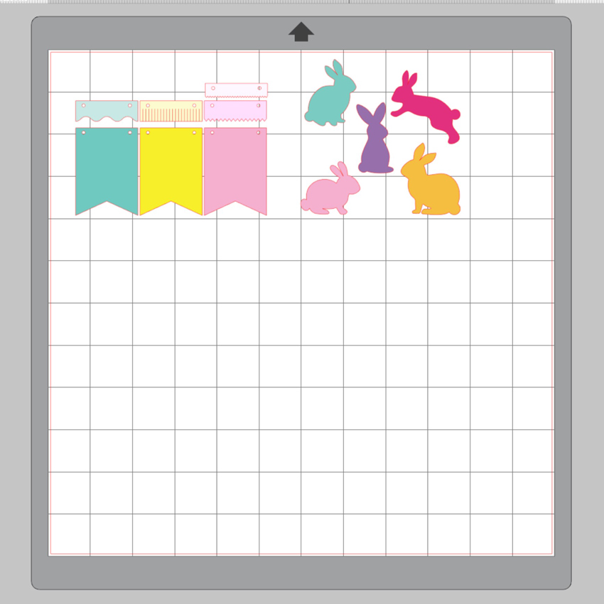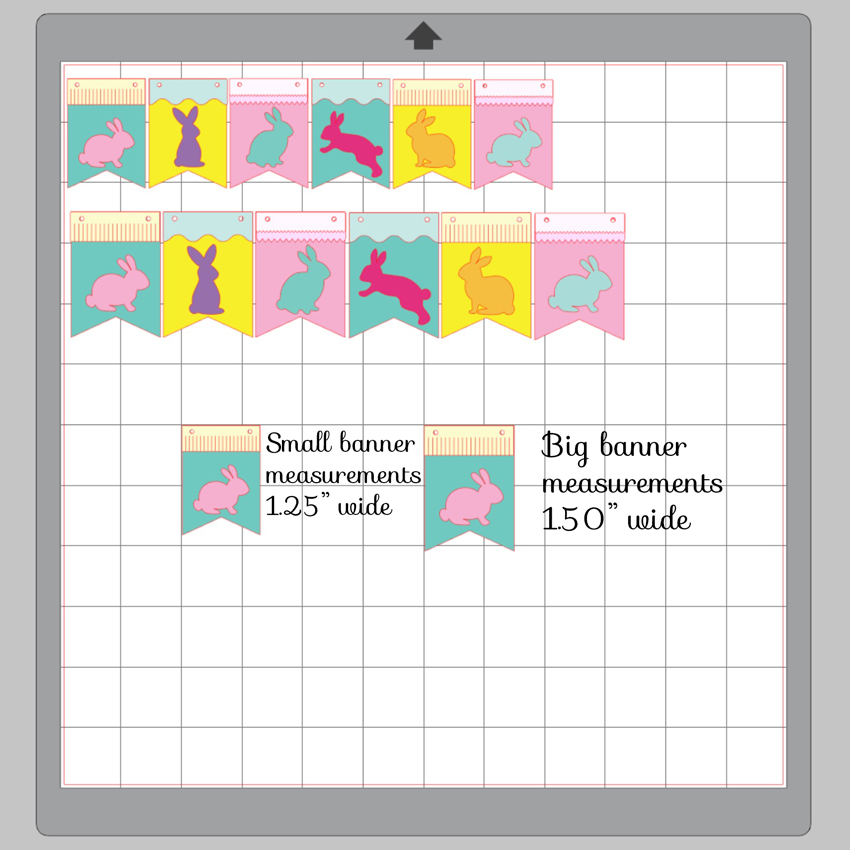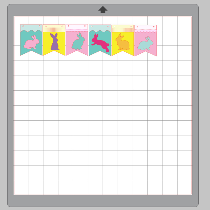 I knew I would need at least 6 banner pieces so I duplicated the banner pieces and added the bunnies to each to get an idea of what it would look like and what colors I wanted to use.