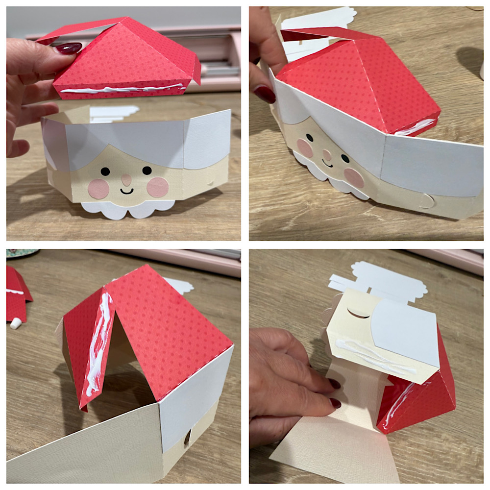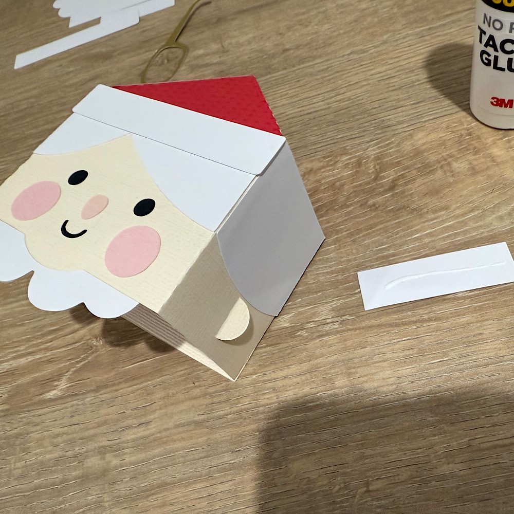 I started with the narrow strip first. This will be the hats brim. I added glue to the end tab and attached to the other end creating a circle. I then folded over all the tabs and added glue to each tab on the inside of the cup. Then I put one of the same-colored circles inside the cup and pressed down on each tab against my work surface making sure to shape and secure each one. I flipped the cup over and glued the second same colored circle on the top covering the tabs. With the wide strip and the two smaller remaining circles I repeated the steps making a taller cup.