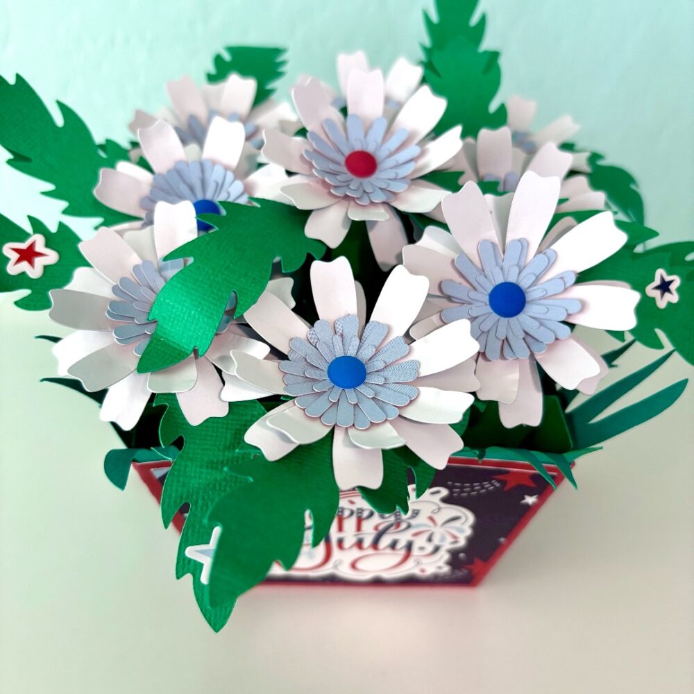 Silhouette). This flower bouquet would make a perfect hostess gift, birthday gift, or a sweet pick-me-up for a friend. I used the Stars and Stripes collection by Echo Park Paper Co for a patriotic theme.