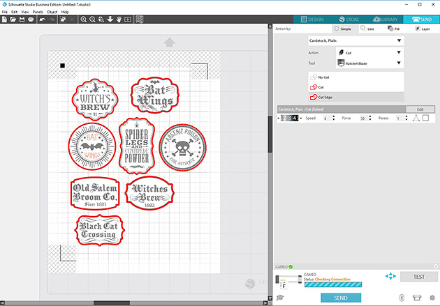 The first thing I do is ungroup the pieces, the score lines of the box are separate but I want to keep that all together so I select around the box and then choose Make under the Modify window or you can right click and Make a Compound Path.