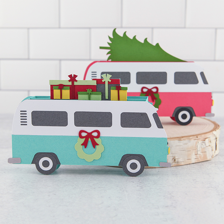 Box Card Van Christmas Tree (SVG, Silhouette)