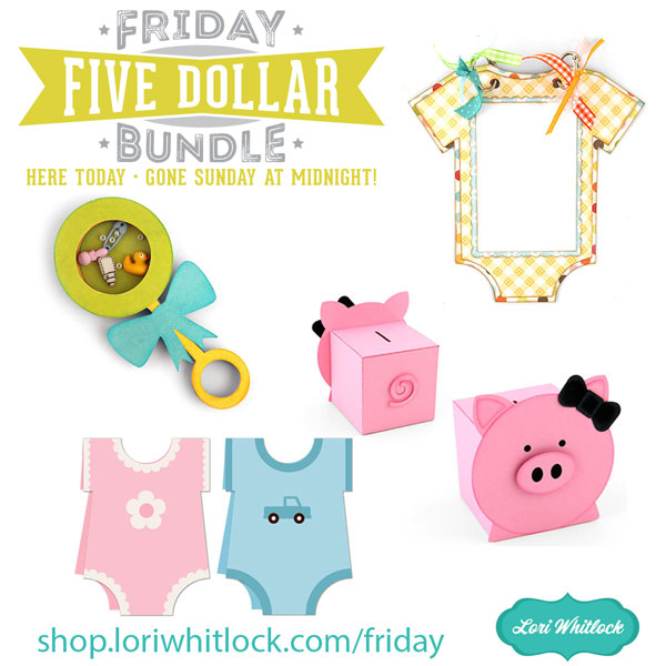 Hi Everyone! Today we have a new Friday $5 Bundle! It will ONLY be available until Midnight Sunday and when it’s gone it’s gone. These SVG files can be used with Cricut Explore, Silhouette Studio (with the Designer Edition upgrade), Scan N Cut, and any other cutter that will work with SVG files. In order for Friday $5 Bundle program to be successful I need your help spreading the word so please tell your friends and announce it on social media. If we have enough of interest, we’ll keep the program going.