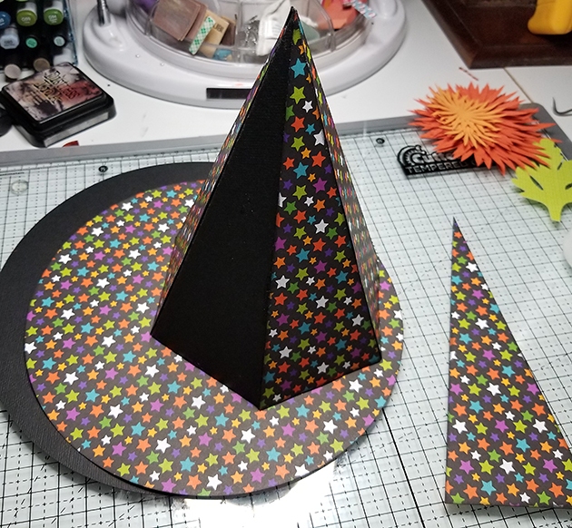 I used the Hexagon Fold Tuck Lantern (Lori Whitlock Shop, Silhouette Design Studio) to create this fun little set of Halloween lanterns. This file is so versatile it can be used for a number of celebrations!