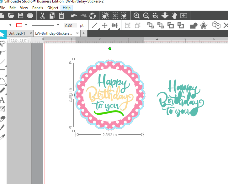 In Silhouette Studio Software, you will ungroup the stickers, ungroup the Happy Birthday Sticker, then Release Compound Path on the Happy Birthday Words. Re color as needed, then select and Make Compound Path.