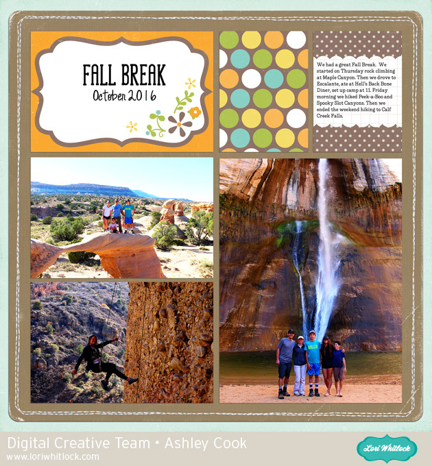 It’s Friday of the first week of November. Have any crafting plans for the weekend? How about any outside plans? Well I just want to make you a little jealous of Beautiful Utah with a layout featuring some Southern Utah pics. Our family journeyed a little south for Fall Break. We had so much fun enjoying this land. And wow! I couldn’t even capture the sunset (while driving), and I never found a great time/place to capture a silhouette, but we did capture some memories. And here they are, recorded: