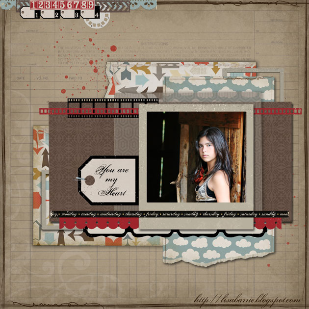 For this layout she used the “Office Oriented Borders,” “Office Oriented Frames,” and the “Fall Fling Collection.” This girl has some serious skills and ‘how to’s’ she shares on her blog. Go check it out.