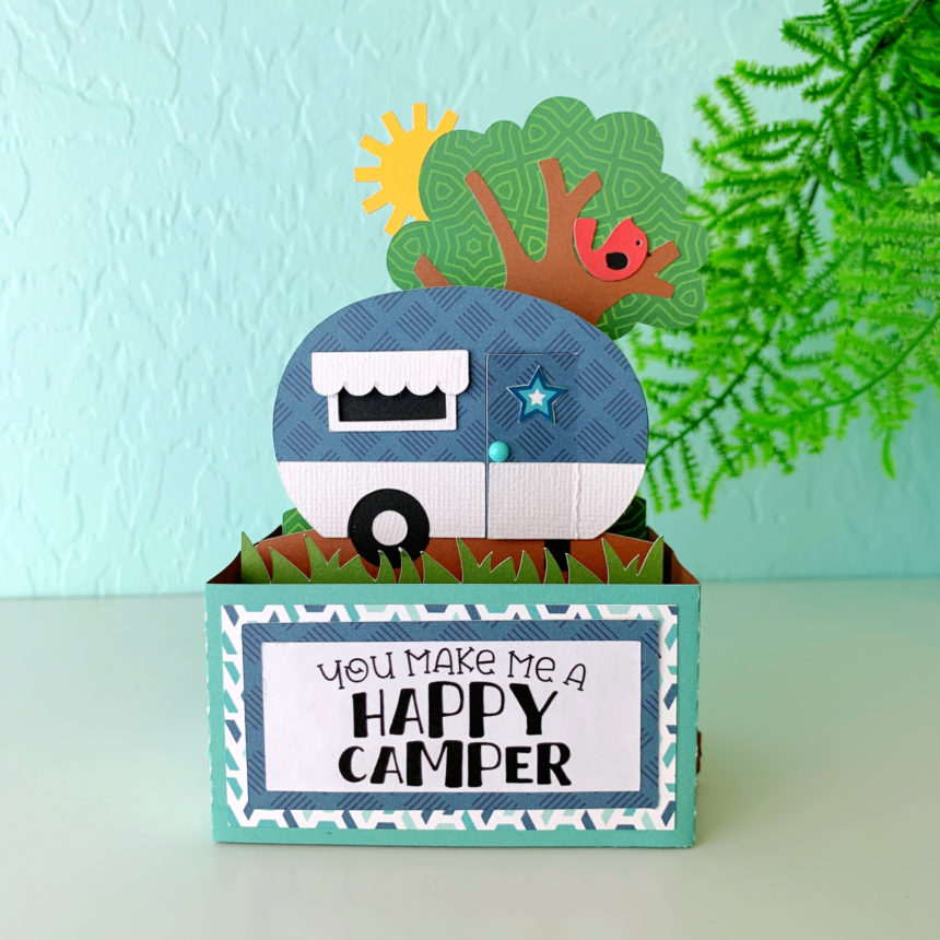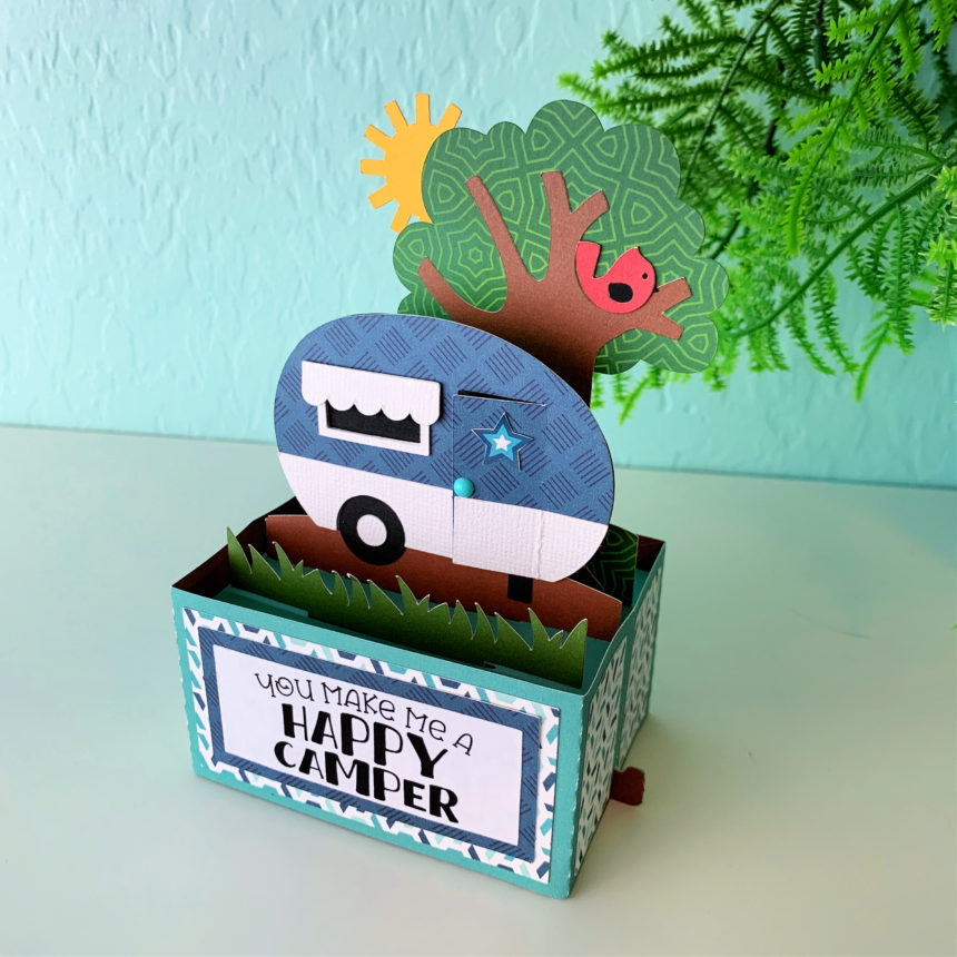 I plan on adding a little note to the back side of the stand base wishing him a very Happy Father’s Day! This card folds flat to fit into a 6×6 square envelope. It will also fit into the free Center Box Card Envelope in Lori’s Shop. For assembly help, see Lori’s Rectangle Pop Up Card Tutorial here on her YouTube Channel.