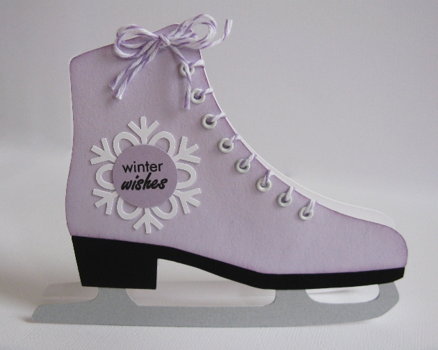 This last card is a favorite of mine using Lori’s Ice Skate diecut from her Christmas Winter Set (available in the Silhouette store). To create my card base I used the same method as I did on my nativity card. To give my skate a more realistic look I also chose to cut the blade from iridescent silver paper.