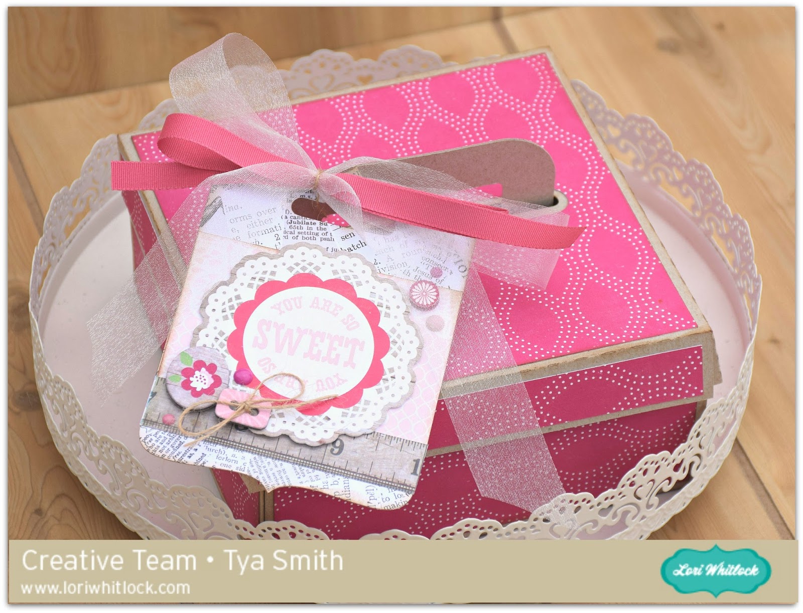 Hi Everybody! It’sTya Smith here with a tutorial on how to assemble the new Four Compartment Cookie Box that Lori recently came out with. I love her boxes and this box was just what I needed to take a yummy treat to my Mom for her birthday.Let me show you the steps it takes to put this box together.
