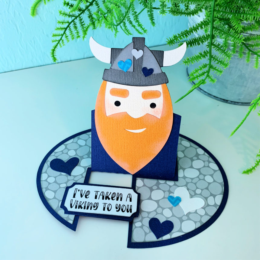 Hi there friends! Lori added some cute new Impossible cards to the shop last week and this cute guy caught my eye. It is the Impossible Card Valentine Viking (SVGSilhouette). The impossible cards are easy to assemble (see tutorial here) and come together quickly. If gluing isn’t your thing the Viking can be flattened as a print and cut for even faster assembly.