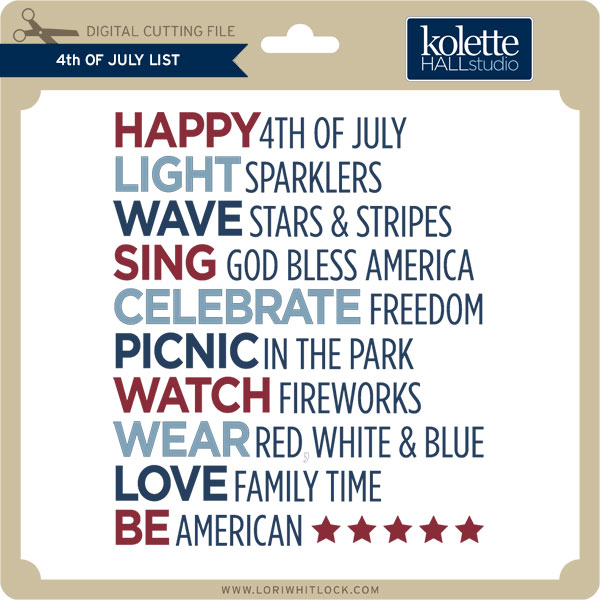 We have a FREE file with purchase all this week! Simply add this 4th of July List to your shopping cart along with ANY $1.99+ purchase from the SVG Shop and this file is yours FREE. Be sure to use Coupon Code: HBDUSA (case sensitive) at checkout. This offer is good through next Sunday.