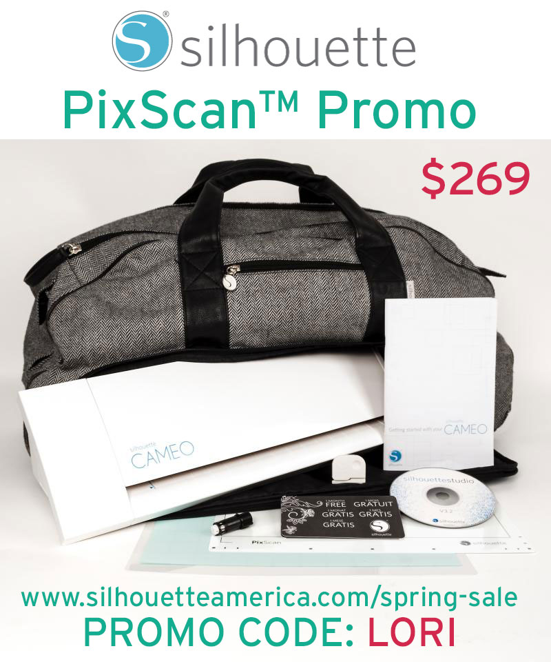 If you’re looking to purchase a Silhouette machine there are some great promo bundles including the PixScan™ Mat + Tote available right now through April 28. Go check out the deals and/or shop right HERE and be sure to use promo code: LORI at checkout for the discounted prices.