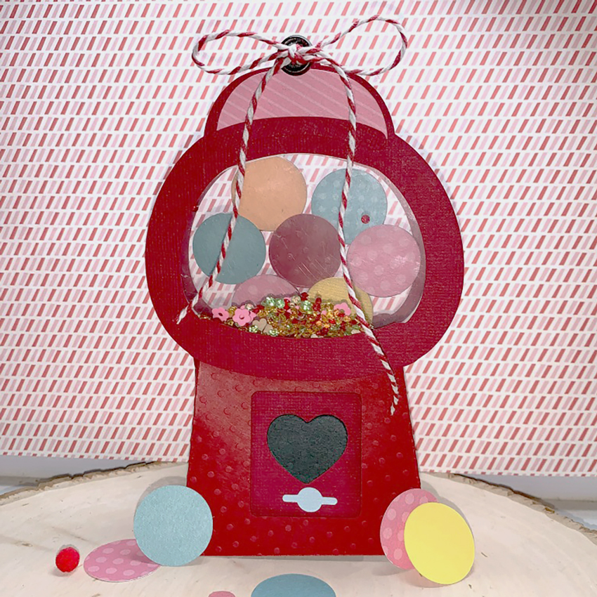 Hi everyone! Valentine’s Day is just around the corner and I fell in love with this little gumball box card that Lori created. When I saw it I knew that I wanted to turn it into a shaker card. You can find this file here in Silhouette Store or here in Lori’s SVG Shop. It’s just way too cute!